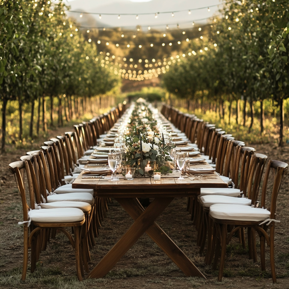 Boutique event-rental company providing rustic-chic wood tables and curated décor for weddings and celebrations in Northern California.